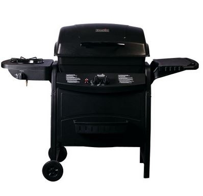 The Char- Broil 2-Burner Gas Grill features has 2 burners with 35,000 BTUs and one side burner with 8000 BTUs. Generously sized at 56"W X 19"D X 42"H. The cooking grate is made of porcelain wire while the swingagway is porcelain-coated wire. It features a Piezo push button ignition and it comes with a cobndiment basket, plastic side shelf and handle.