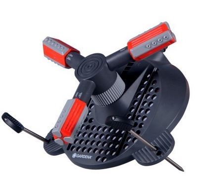 The Circular Sprinklet Mambo is a sophisticated circular sprinkler for watering small to large gardens. Area coverage : 9 - max. 310 m2. Range of spray : 3 - mx. 20 m2. Watered area can be adjusted as required using swivel, high-precision nozzles. Range can be altered by changing the flow of water. dirt filter can be removed and cleaned. sturdy sprinkler base for stable use and mobility. Two metal spikes ensure stabilty when the sprinkler is used on slopes or uneven ground.